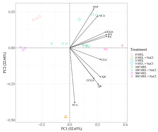 2.4. The Effect of Melatonin and NaCl on the Accumulation of Phenolic Compounds