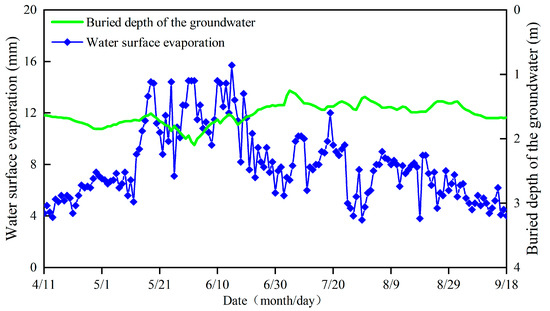 Variation of water surface evaporation and buried depth of the groundwater in 2018.