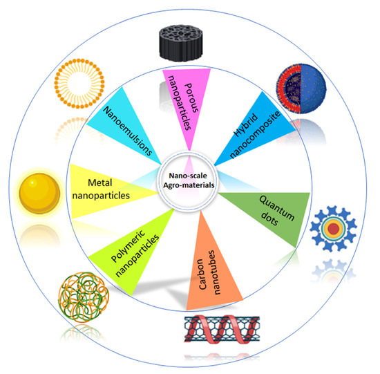 Schematics of different types of nanoscale agro-materials used in agriculture. Image partially created with BioRender.com.