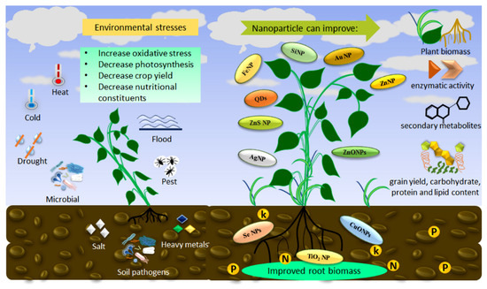 Overview of different environmental stresses and role of nanoscale materials to improve plant response.
