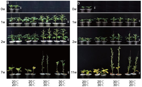 Figure 8b,d). A possible reason for this discrepancy between the findings is that Hastilestari et al. (2018) used a photoperiod of 16 h/8 h (day/night) and a high-temperature treatment duration of 10 days, while we used a photoperiod of 12 h/12 h (day/night) and a high-temperature treatment duration of 14 days.