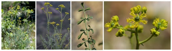 Figure 1. The plant Ruta angustifolia Pers. (FloresAlpes, https://www.florealpes.com) accessed on 17 December 2022.