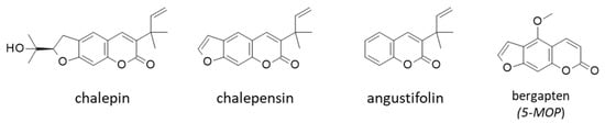 88. Del Castillo, J.B.; Luis, F.R.; Secundino, M. Angustifolin, a coumarin from Ruta angustifolia. Phytochemistry 1984, 23, 2095–2096. [Google Scholar] [CrossRef]