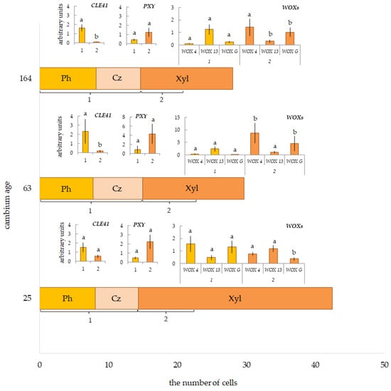 2.5. Expression of the Genes Encoding CLE41/44-PXY-WOX—Signaling Module in Trunk Tissues of Scots Pine of Different Ages