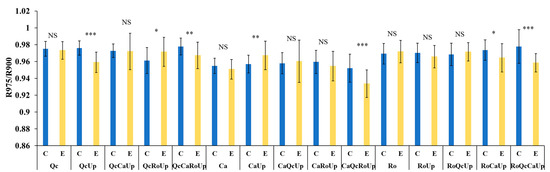 | Photochemical Reflectance Index | PRI | (R531 − R570)/(R531 + 570) | [23] |