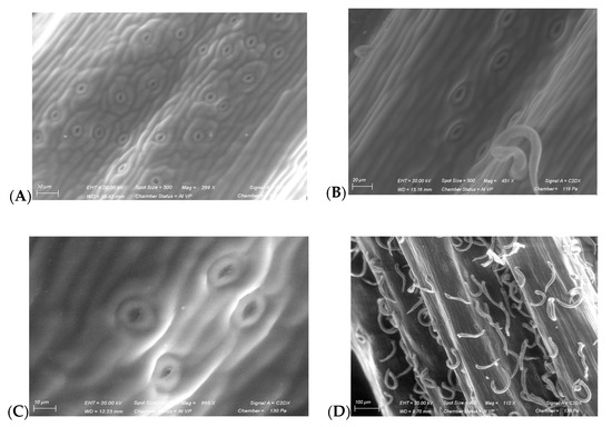 2.7. Scanning Electronic Microscopy (SEM) Observations