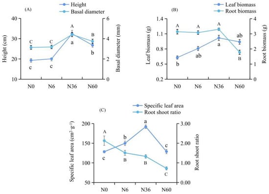 2.1. Growth and Biomass Affected by Nitrogen Treatment