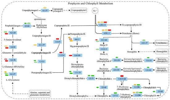 - Liu, M.; Ma, W.; Su, X.; Zhang, X.; Lu, Y.; Zhang, S.; Yan, J.; Feng, D.; Ma, L.; Taylor, A.; et al. Mutation in a chlorophyll-binding motif of Brassica ferrochelatase enhances both heme and chlorophyll biosynthesis. Cell Rep. 2022, 41, 111758. [Google Scholar] [CrossRef]