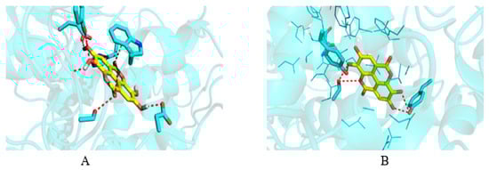 Docked pose of ellagic acid into the cavity of (A) AChE and (B) COX-2.