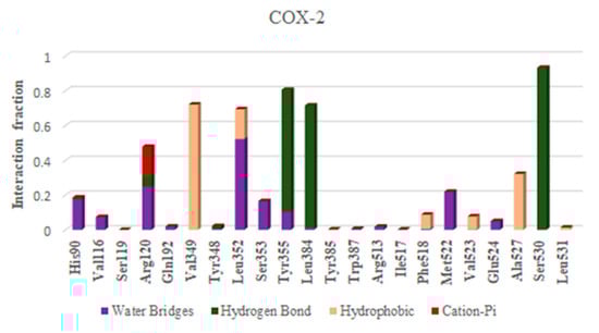 Histogram of interaction COX-2 and AChE with ellagic acid during MD of 100 ns.