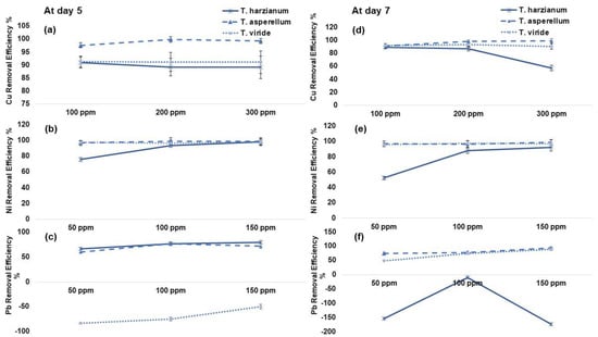 2.1. Cu, Ni and Pb Removal through Fungal Strains in Aqueous Media
