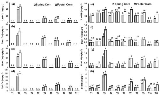 4.5.3. Estimation of Cu and Ni in Plants and Soil