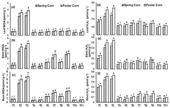 4.5.4. Estimation of Maize Malondialdehyde and Hydrogen Peroxide Concentration
