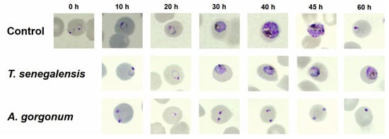 2.3. In Vitro Effect of A. gorgonum and T. senegalensis on P. falciparum Morphology