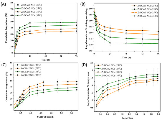 4.4.2. Geraniol Release Studies from ZnO-Based NCs