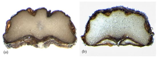 Mericarps cross-section of: (a) Pimpinella anisoides V.Brig. and (b) Pimpinella gussonei (C.Presl) Bertol.