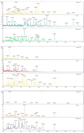 After drying, the samples were overlaid with 1 μL of the a-cyano-4-hydroxycinnamic acid matrix (10 mg/mL). After crystallization of the matrix, the samples were analyzed using a MALDI-TOF MicroFlex (Bruker Daltonics, Billerica, MA, USA) with linear and positive mode settings with a range of m/z 200–2000. Using automated analysis, the same similarities were used to generate a standard global spectrum (MSP). Based on the Euclidean distance, 19 spectra were generated in MALDI Biotyper 3.0 and subsequently merged into a dendrogram [].