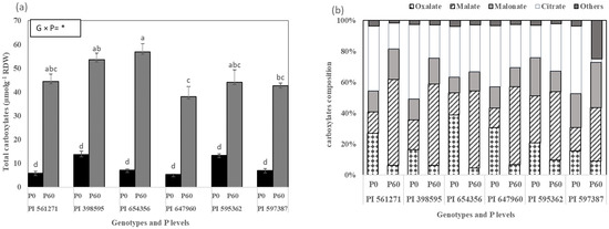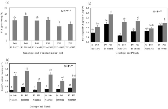 | PI 597387 | P0 P60 | 1.11c 2.63b | 0.56cd 1.00a | 1.67de 3.63ab | 0.51ab 0.38bcde | 0.44 0.46 | 61.0cde 106.0a |