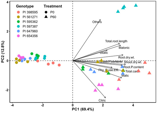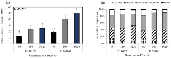 - Vengavasi, K.; Pandey, R. Root exudation potential in contrasting soybean genotypes in response to low soil phosphorus availability is determined by photo-biochemical processes. Plant Physiol. Biochem. 2018, 124, 1–9. [Google Scholar] [CrossRef] [PubMed]