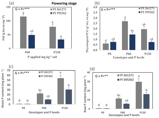 | PI 561271 | P0 P60 P120 | 0.79d 7.74b 10.25a | 0.52d 4.24b 5.40a | 1.31d 11.97b 15.65a | 0.65 0.55 0.54 | 0.41 0.44 0.45 | 46.1e 327.9b 440.3a |