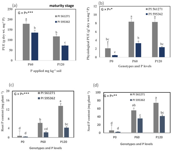 2.2.4. Shoot, Root, and Seed P Acquisition, PUE at Maturity