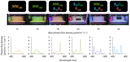 −1. In general, a broad spectrum with a higher blue photon flux density (in the range of 12–62 μmol∙m