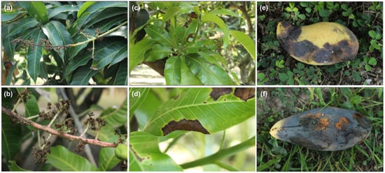 - Ploetz, R.C. Diseases of mango. In Diseases of Tropical Fruit Crops; Ploetz, R.C., Ed.; CAB International: Wallingford, UK, 2003; pp. 327–363. [Google Scholar]