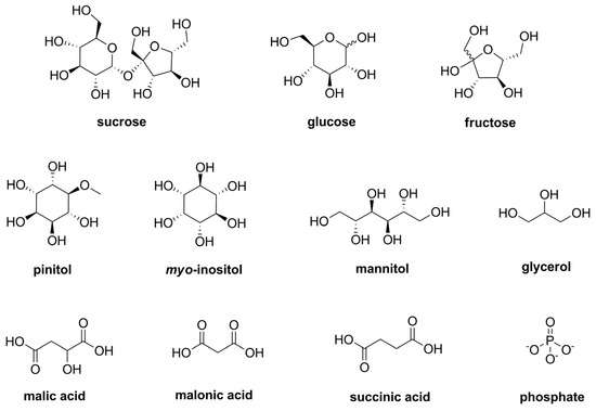 Chemical structures of most dominating primary metabolites.