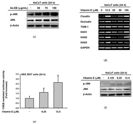 2.3. Effects of As-EE on MAPK-Mediated AP-1 and CREB Signaling Pathway