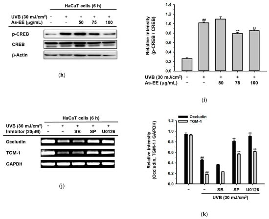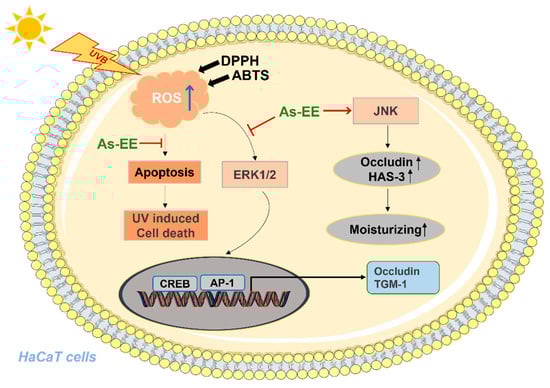 2.4. Moisturizing and Anti-Apoptotic Effect of As-EE in UVB-Irradiated Human Keratinocytes