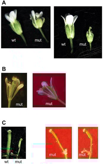 2.3. Growth of Double Homozygous Mutant Plants Is Severely Affected