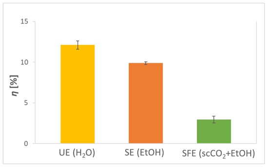 The extraction yields (η) are presented as mean values of two conducted extractions and were calculated as recently described by Kupnik et al. [23] using the equation below.