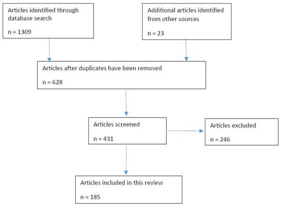 A literature search on Fabaceae species used as traditional medicines in Zimbabwe was conducted from September 2021 to November 2022. This information was retrieved from different online databases such as BioMed Central, Web of Science, Springerlink, Google Scholar, Scielo, PubMed, Science Direct, ACS Publications, Scopus and JSTOR. In addition, theses, dissertations, book chapters, books and scientific reports were retrieved from the libraries of the University of Fort Hare (UFH) in South Africa and the National Herbarium (SRGH) in Harare, Zimbabwe. Keywords and terminologies such as Zimbabwe, ethnobotany, ethnomedicine, ethnopharmacology, indigenous, medicine, phytomedicine, traditional medicine, Zimbabwean Fabaceae, Zimbabwean Leguminosae, medicinal Fabaceae, medicinal Leguminosae, Zimbabwean traditional medicine, Fabaceae and Leguminosae were used to search for relevant articles as shown in the PRISMA flow diagram (Figure 1). From each article, the following information was collected: the scientific names of the plant species, their growth form, plant part(s) used, methods of preparation and medicinal uses. The medicinal use categories were classified according to the Economic Botany Data Collection Standard [19]. The scientific names of the Fabaceae species from the original data sources were updated to the recently accepted names according to the Plants of the World Online website [20]. The Fabaceae subfamilies were updated following the classifications of the “Legume Phylogeny Working Group”, which presently recognizes six subfamilies: Caesalpinioideae, Cercidoideae, Detarioideae, Dialioideae, Duparquetioideae and Papilionoideae [2].