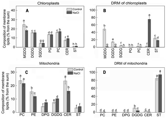 Rozentsvet, O.A.; Bogdanova, E.S.; Nurminsky, V.N.; Nesterov, V.N.; Chernyshov, M.Y. Detergent-Resistant Membranes in Chloroplasts and Mitochondria of the Halophyte Salicornia perennans under Salt Stress. Plants 2023, 12, 1265. https://doi.org/10.3390/plants12061265
