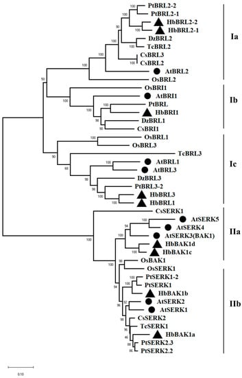 2.1. Identification of BRI1 and BAK1 Genes in Rubber Tree