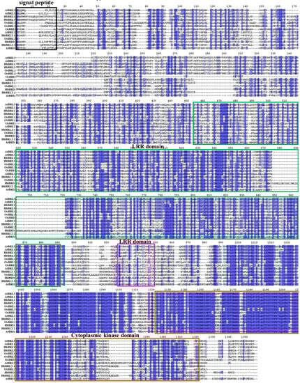 - Shi, S.H.; Bleecker, A.B. Plant receptor-like kinase gene family, diversity, function, and signaling. Sci STKE 2001, 113, re22. [Google Scholar] [CrossRef]