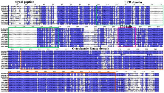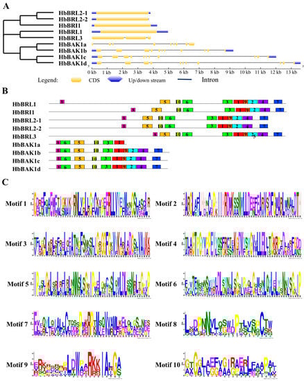 2.3. Sequence Characteristics of HbBRI1 and HbBAK1 Members