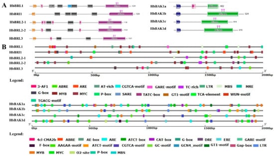 2.4. Structural Domain and Cis-Elements in HbBRI1 and HbBAK1