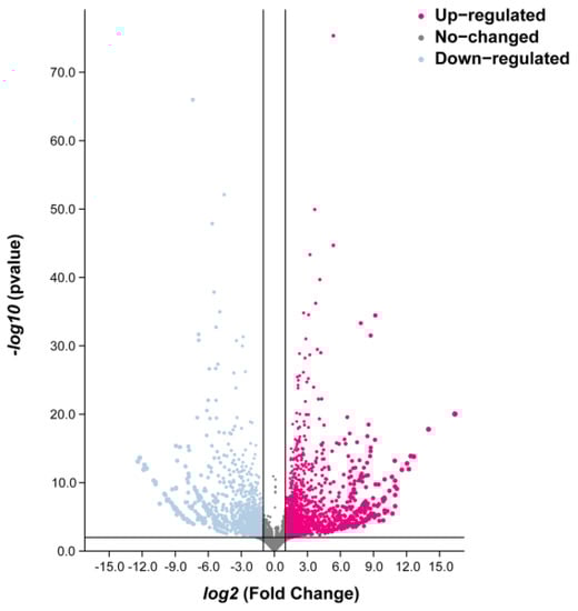 - Love, M.I.; Huber, W.; Anders, S. Moderated estimation of fold change and dispersion for RNA-seq data with DESeq2. Genome Biol. 2014, 15, 550. [Google Scholar] [CrossRef]