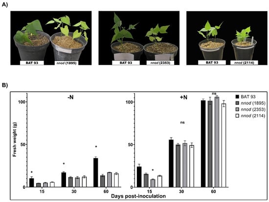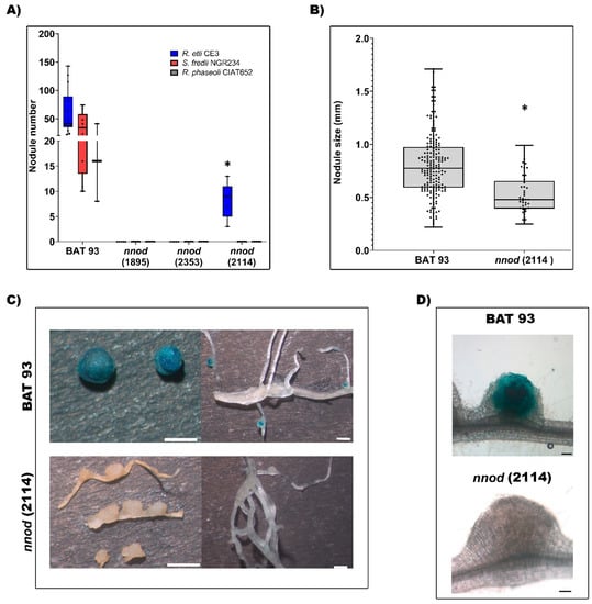 2.2. Growth, Root Phenotype and Nodulation Capacity of Nnod Mutants