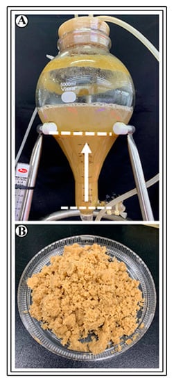 Cell suspension cultures in balloon-type bubble bioreactor. (A) Biomass accumulated after 4 weeks of culture, (B) Harvested cell biomass.