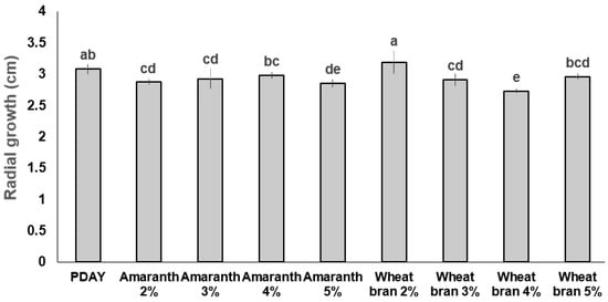 In a second experiment, only radial growth and sporulation (conidia formation) were evaluated, testing wheat bran and amaranth flour as supplements at 2%, 3%, 4%, and 5%, as explained above.