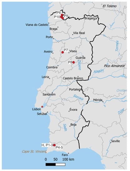 - González-Clavijo, E.J.; Valadares, V. A Estrutura do Complexo de Monchique. In Proceedings of the Actas do VI Congresso Nacional de Geologia Ciências da Terra (UNL), Lisboa, Portugal, 4–6 June 2003; Volume No. Especial 5, pp. 37–40. [Google Scholar]
