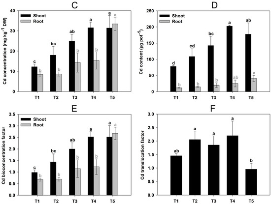 Total Cd concentrations in the dried shoots and roots were determined using the method described in the Supplementary Methods. The Cd bioconcentration factor (BCF), translocation factor (TF), and total accumulation content in the C. grandiflora shoots and roots were calculated using previously reported formulas [51,52].