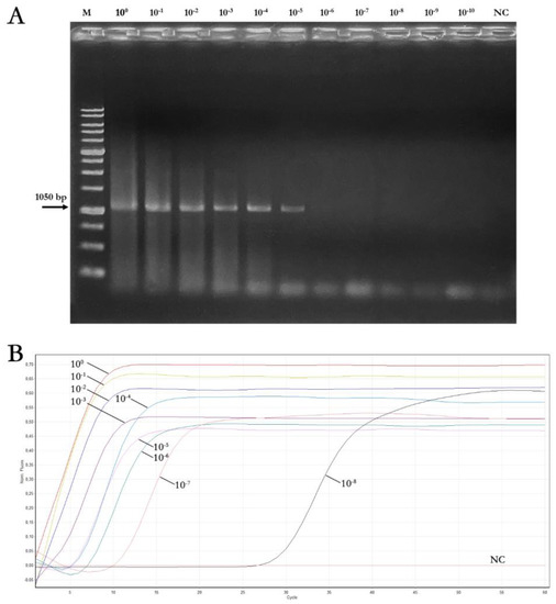 2.5. Sensitivity, Reaction Time, and Specificity of Real-Time LAMP Assay and Comparison to End-Point PCR