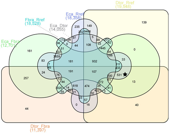 - Heberle, H.; Meirelles, G.V.; da Silva, F.R.; Telles, G.P.; Minghim, R. InteractiVenn: A web-based tool for the analysis of sets through Venn diagrams. BMC Bioinform. 2015, 16, 169. [Google Scholar] [CrossRef] [PubMed]
