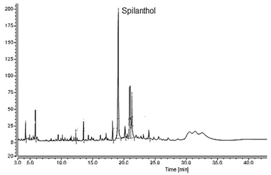 3.3. Obtaining the Extract of A. oleracea Flowers Obtained by Supercritical Extraction (SE) and Preparation of the Alcoholic Concentrated Extract (ACE)