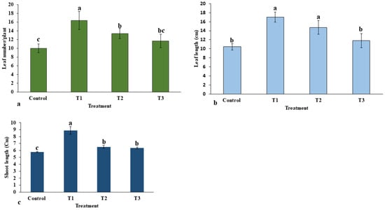 The shoot length, leaf number and leaf length were measured, and comparison was performed with the control group and among treated plants.