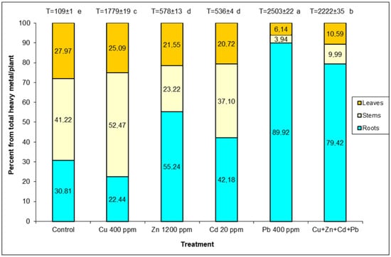 | Cd+Pb | Stems | 402.18 ± 8.56 a | 114.15 ± 2.82 a | 143.84 ± 4.29 a | 39.83 ± 1.61 b |