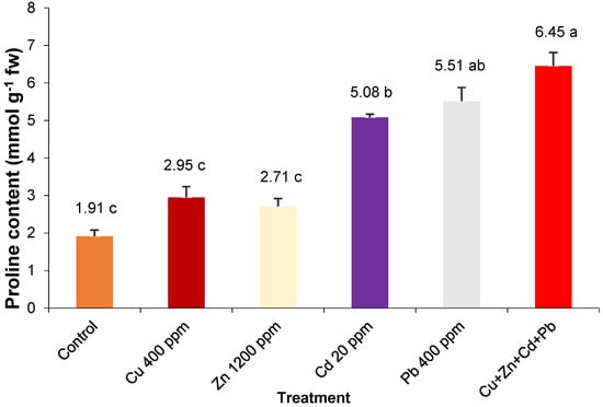 | Cu 400 ppm | 19.80 ± 0.46 a | 4.90 ± 0.08 b | 24.69 ± 0.48 a | 3.73 ± 0.16 c | 28.42 ± 0.56 b |